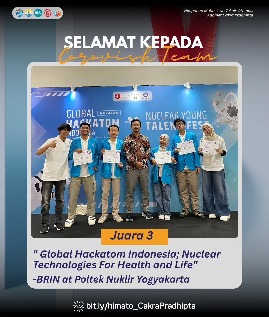 atas prestasinya meraih Juara 3 dalam ajang Global Hackatom Indonesia: Nuclear Technologies for Health and Life,